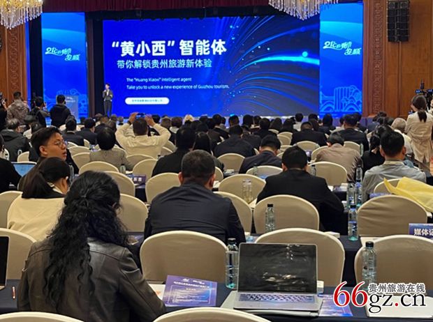 在旅游产品发布环节,贵旅数网公司副总经理陈媛女士,展示“黄小西”AI智能体——贵州旅游行业大模型功能演示与行业应用推广;“一码游贵州”品牌经理鲍岗一,作贵州旅游门户“一码游贵州”平台3.0版本介绍;贵旅国际旅行服务有限公司总经理助理李卉,推介“黄小西吃晚饭”暨支支串飞、小车小团经典旅游线路。