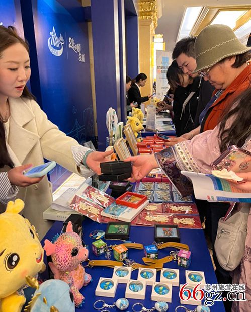 4月11日上午,第十九届贵州旅游产业发展大会进入第二天,安顺澳维酒店宾客盈门、气氛热烈,旅行商大会暨贵州旅游产品推广会(简称大会暨推广会)在这里举行。会前,多家文旅企业踊跃设台,展示各种极具地方特色和科技含量的文创产品,吸引众多与会者驻足观赏、争相购买。