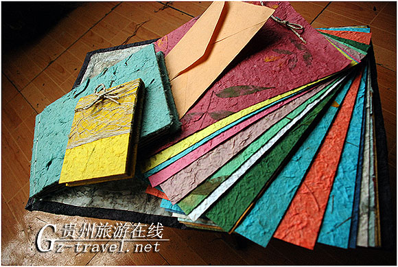 特种手工纸是目前全国绝无仅有的品种,其五彩缤纷的色彩系用天然植物原料染色,不含任何化学成分,粗犷古朴,有的还用天然树叶压入纸中形成美丽的图案,系返璞归真的“原生态”纸品,深受国内外青睐。