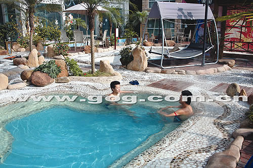 泉天下国际俱乐部占地面积50亩,设有高尔夫、温泉、游泳池、桑拿、干湿蒸房、客房、商务中心、餐饮、小 吃、露天休闲吧等服务设施。泉天下生态温泉设有13个不同类型的温泉汤池,并设有鲜花池、牛奶池、鱼疗池、精 盐池等功能池。泉天下国际俱乐部拥有18间高级包房;客房拥有38间套房;客房设计独具特色的室内温泉泡池、提 供各种温泉汤大床间、豪华套房,客房内配有空调、迷你吧、保健箱以及卫星电视。餐厅和包房可同时接到180多 人用餐,露天泡池可接待110人。