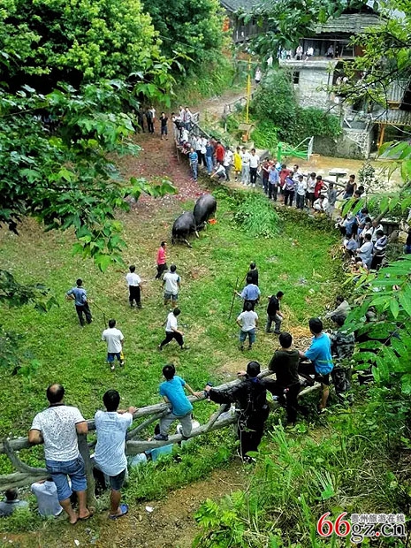过卯节没有特别的祭祀活动,更像农忙以后的忙里偷闲,附近的村寨聚集在一起搞娱乐活动:有斗牛、踩芦笙及吃长桌宴等,一起祈求风调雨顺,粮食丰收。