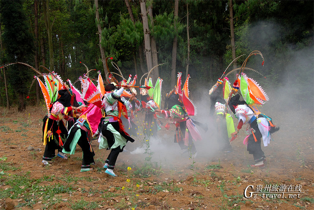 图为活动内容之一的地戏队表演,非常的生动精彩。