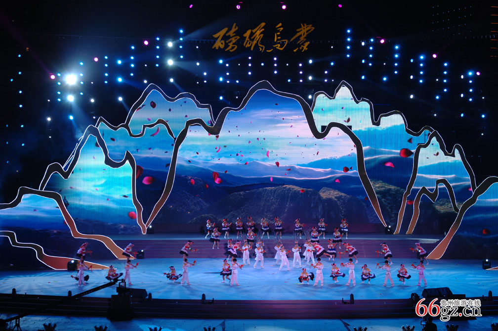 第七届贵州旅游产业发展大会倾力打造的“磅礴乌蒙”文艺汇演在中国杜鹃花都--黔西,美丽的水西湖畔杜鹃花广场隆重上演。