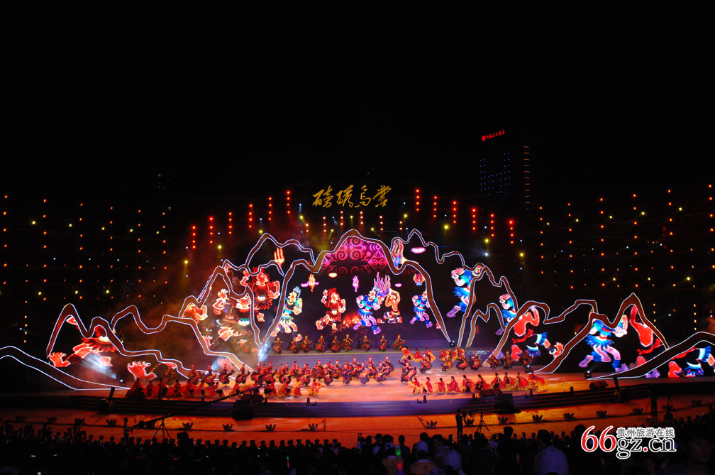 第七届贵州旅游产业发展大会倾力打造的“磅礴乌蒙”文艺汇演在中国杜鹃花都--黔西,美丽的水西湖畔杜鹃花广场隆重上演。
