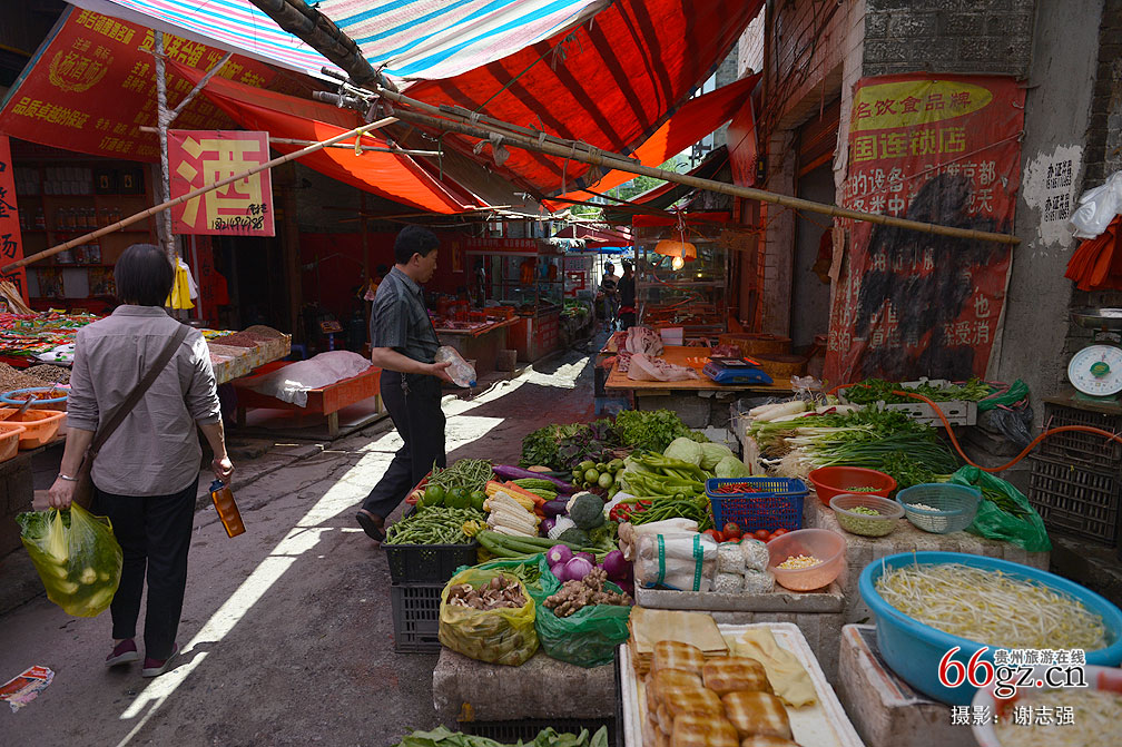 去织金县城办完事,抓紧时间去逛了一下菜市场,琢磨着多买些新鲜的时令蔬菜回家。织金的菜场和其他县份的菜场并没有什么差异,有“豆腐西施”,有卖菜小伙,猪肉味、鱼腥味、青菜味、陈醋味,百味交杂;鸡啼声、剁肉声、叫卖声、讨价声,声声入耳。菜市场,象一条扁担,一头连着田野村庄,一头牵着千户万家。黎明之前,农民和小贩用汗水整理出来的蔬果肉类,把菜场丰富得充实多彩。天亮之后,人群来这里购买食材,家庭的餐桌因此变得营养丰富。织金菜场虽差异化不大,但充斥着许多当地特有的小吃和山野美食,也是认识织金最直接的市井之地。
