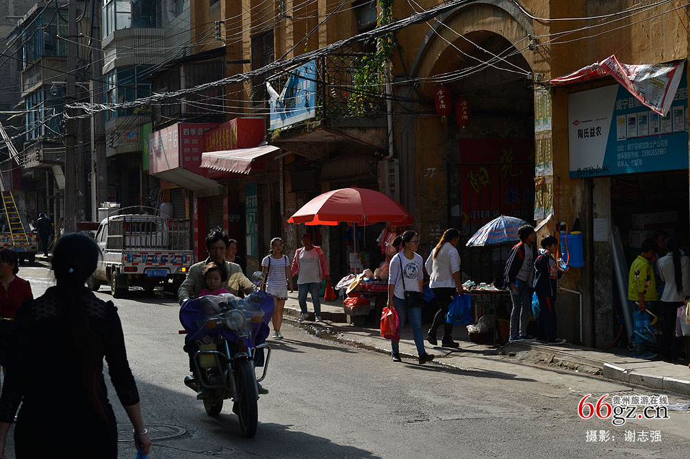 从板底采风回到威宁县城已是下午,此时的老街太阳透过窄窄的街道斜斜的照在赶路的人身上,拖出长长的影子。偶尔有身着彝族回族服装在的人走在老街上。高原火辣的阳光把他们晒成古铜的肤色,黑里透红。狭窄的路上车辆行人穿行其中,连只有一米不到的人行道上也摆着摊子买东西,可想而知高峰时一定是水泄不通的。想买些洋芋带回家,结果人家说要按袋卖,最好的卖一块二,必须买一百斤以上,求了半天卖了十斤。街边卖叶子烟的特别多,一路上看到叼着长烟杆,无所顾忌地吧哒吸着,没有人介意。也没有人介意扫街拍摄的人,匆忙的人们各自匆忙着。