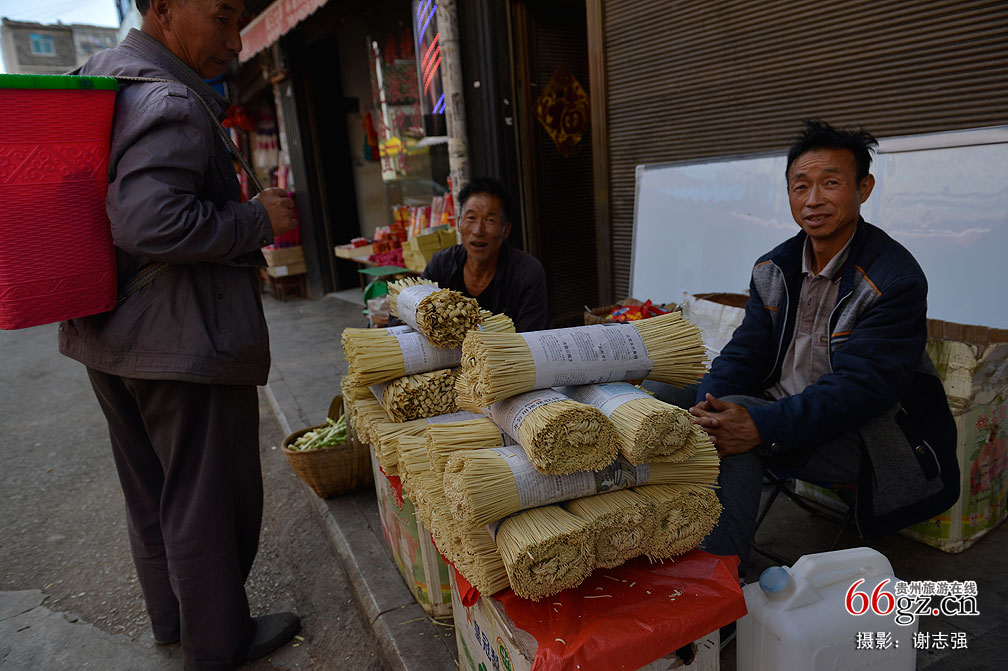 从板底采风回到威宁县城已是下午,此时的老街太阳透过窄窄的街道斜斜的照在赶路的人身上,拖出长长的影子。偶尔有身着彝族回族服装在的人走在老街上。高原火辣的阳光把他们晒成古铜的肤色,黑里透红。狭窄的路上车辆行人穿行其中,连只有一米不到的人行道上也摆着摊子买东西,可想而知高峰时一定是水泄不通的。想买些洋芋带回家,结果人家说要按袋卖,最好的卖一块二,必须买一百斤以上,求了半天卖了十斤。街边卖叶子烟的特别多,一路上看到叼着长烟杆,无所顾忌地吧哒吸着,没有人介意。也没有人介意扫街拍摄的人,匆忙的人们各自匆忙着。