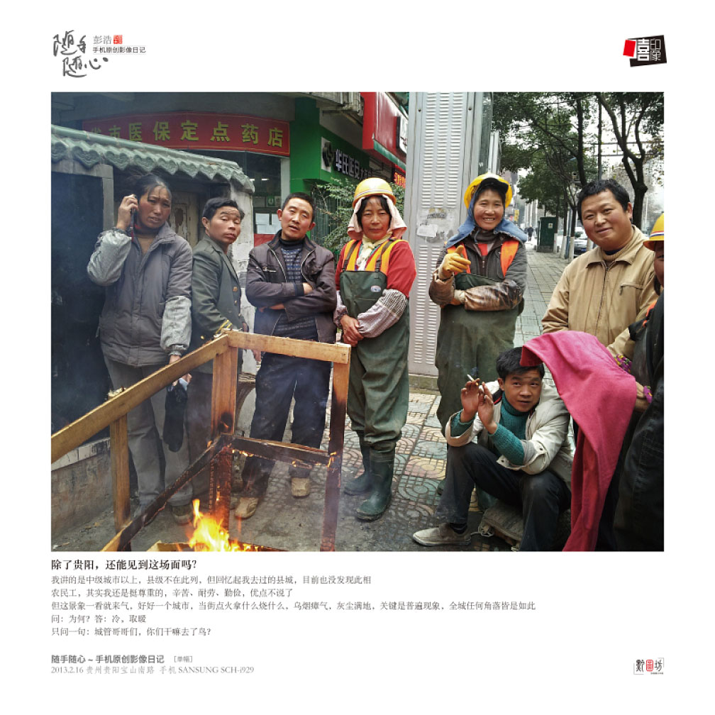 这次手机摄影展是彭浩用了一年的时间,采用手机纪实拍摄的手法与微信实时传播的方式,记录了身边的各式各样的生活与场景。展出作品1500余幅,其中,影像日记作品100套,单幅作品40幅,