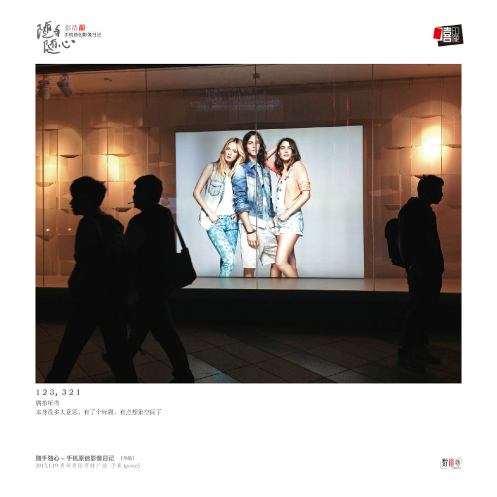 2013年6月8日15点,由嘻印像光影长廊(嘻客咖啡)、当代影像文化传播中心、贵州新目标文化传播有限公司、贵州鼎元文化传播有限公司、甲秀楼风景区管理处主办,贵州省青年摄影家协会、腾讯贵阳站、那些年酒业、博伟航拍、黔图坊专业影像协办的“甲秀光影*嘻印像”彭浩手机原创影像日记展暨手机影像文化交流会在贵阳市甲秀楼翠微园开展。