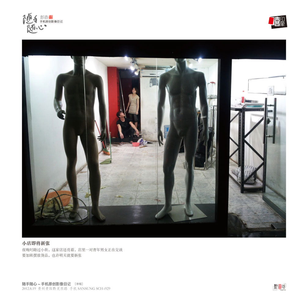 2013年6月8日15点,由嘻印像光影长廊(嘻客咖啡)、当代影像文化传播中心、贵州新目标文化传播有限公司、贵州鼎元文化传播有限公司、甲秀楼风景区管理处主办,贵州省青年摄影家协会、腾讯贵阳站、那些年酒业、博伟航拍、黔图坊专业影像协办的“甲秀光影*嘻印像”彭浩手机原创影像日记展暨手机影像文化交流会在贵阳市甲秀楼翠微园开展。