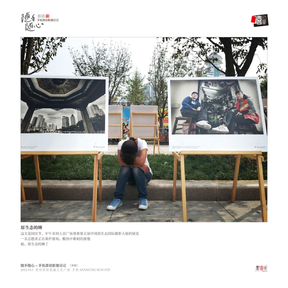 2013年6月8日15点,由嘻印像光影长廊(嘻客咖啡)、当代影像文化传播中心、贵州新目标文化传播有限公司、贵州鼎元文化传播有限公司、甲秀楼风景区管理处主办,贵州省青年摄影家协会、腾讯贵阳站、那些年酒业、博伟航拍、黔图坊专业影像协办的“甲秀光影*嘻印像”彭浩手机原创影像日记展暨手机影像文化交流会在贵阳市甲秀楼翠微园开展。