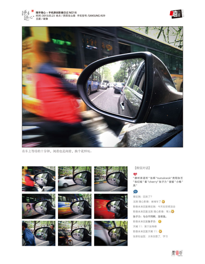 这次手机摄影展是彭浩用了一年的时间,采用手机纪实拍摄的手法与微信实时传播的方式,记录了身边的各式各样的生活与场景。展出作品1500余幅,其中,影像日记作品100套,单幅作品40幅