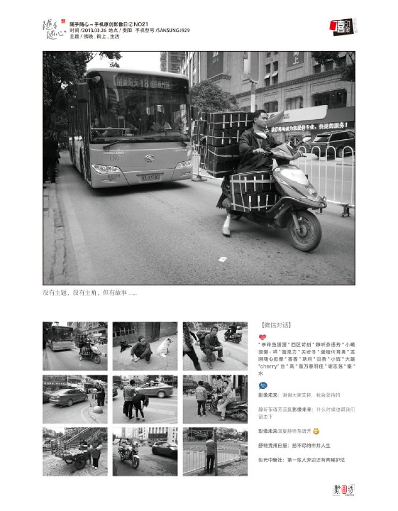 这次手机摄影展是彭浩用了一年的时间,采用手机纪实拍摄的手法与微信实时传播的方式,记录了身边的各式各样的生活与场景。展出作品1500余幅,其中,影像日记作品100套,单幅作品40幅