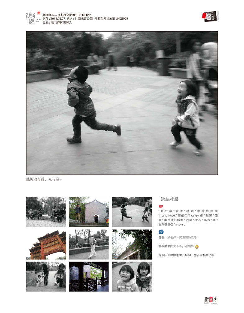 这次手机摄影展是彭浩用了一年的时间,采用手机纪实拍摄的手法与微信实时传播的方式,记录了身边的各式各样的生活与场景。展出作品1500余幅,其中,影像日记作品100套,单幅作品40幅