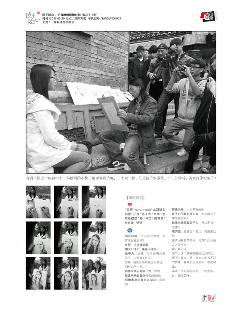 这次手机摄影展是彭浩用了一年的时间,采用手机纪实拍摄的手法与微信实时传播的方式,记录了身边的各式各样的生活与场景。展出作品1500余幅,其中,影像日记作品100套,单幅作品40幅
