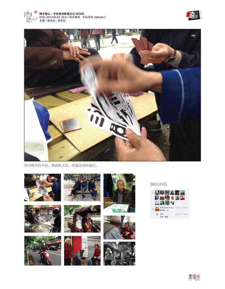 这次手机摄影展是彭浩用了一年的时间,采用手机纪实拍摄的手法与微信实时传播的方式,记录了身边的各式各样的生活与场景。展出作品1500余幅,其中,影像日记作品100套,单幅作品40幅