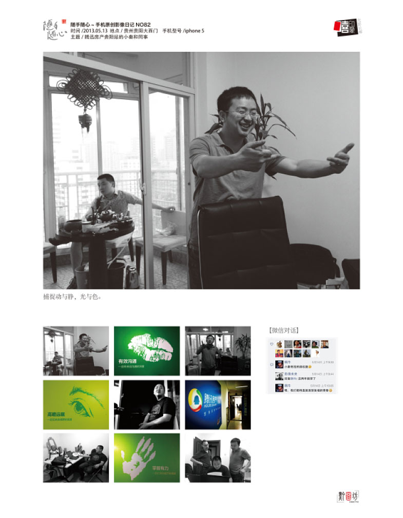 这次手机摄影展是彭浩用了一年的时间,采用手机纪实拍摄的手法与微信实时传播的方式,记录了身边的各式各样的生活与场景。展出作品1500余幅,其中,影像日记作品100套,单幅作品40幅