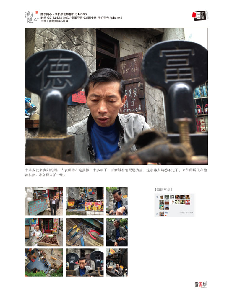 这次手机摄影展是彭浩用了一年的时间,采用手机纪实拍摄的手法与微信实时传播的方式,记录了身边的各式各样的生活与场景。展出作品1500余幅,其中,影像日记作品100套,单幅作品40幅