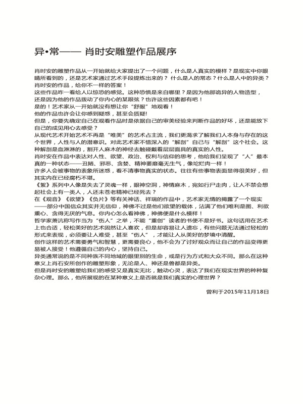 "异·常"肖时安雕塑作品展