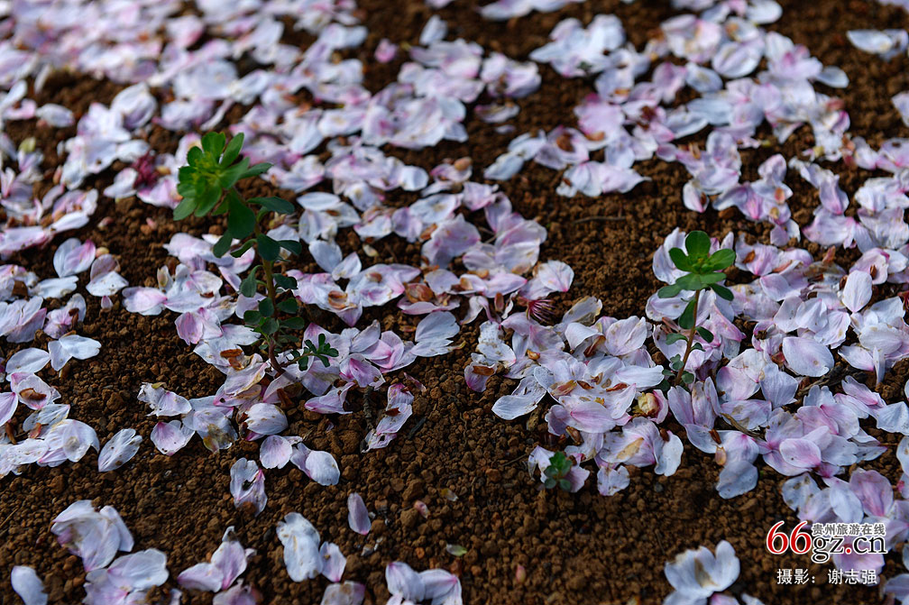 三月,平坝农场又见樱花。樱花开落,仅此十余天。我待花开,又送花落。漫天飞舞的樱花于风中飘扬,粉红色的花瓣点缀了厚重的大地,在这花的天地里一切变的如此的诗意、浪漫、唯美,却带着一份微微的悲凉。