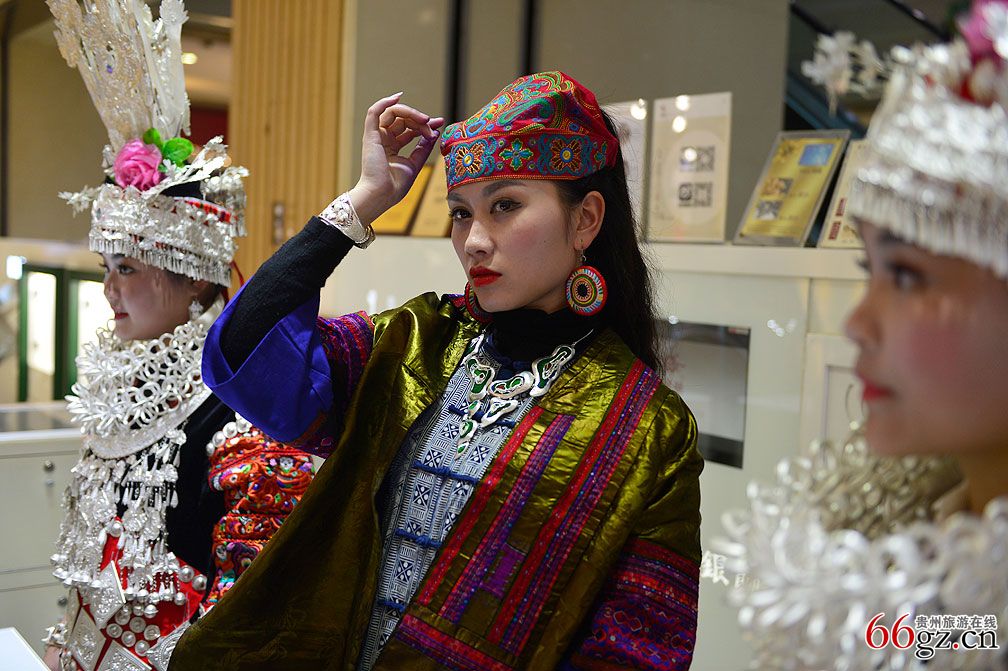 3月29日,《闹春·台江--民族文化摄影展》在贵阳亨特城市广场开展。作为黔东南州台江县苗族文化集中展示的春季大展,给现场观众带来了一场传统和时尚碰撞的视觉盛宴。欧桑、金花与台江来的苗族姑娘为摄影师当模特,在亨特城市广场内拍摄,文化的冲突带来不一样的视觉。