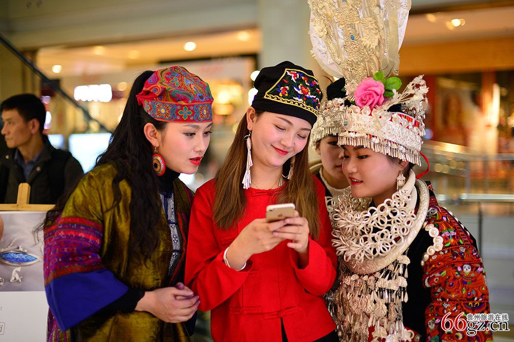 3月29日,《闹春·台江--民族文化摄影展》在贵阳亨特城市广场开展。作为黔东南州台江县苗族文化集中展示的春季大展,给现场观众带来了一场传统和时尚碰撞的视觉盛宴。欧桑、金花与台江来的苗族姑娘为摄影师当模特,在亨特城市广场内拍摄,文化的冲突带来不一样的视觉。