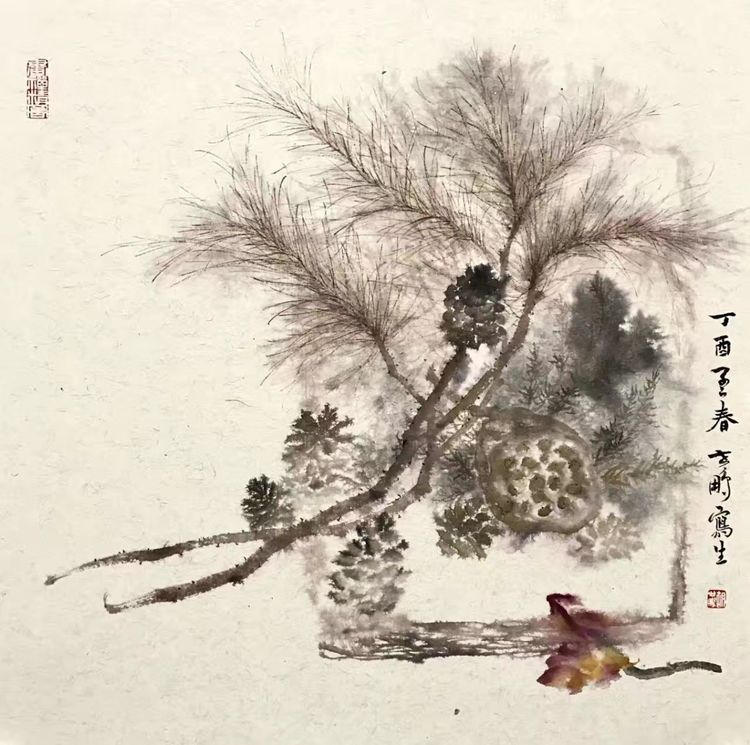 【畫禪精舍水墨寫生】紙本水墨設色.尺寸:50x50cm.