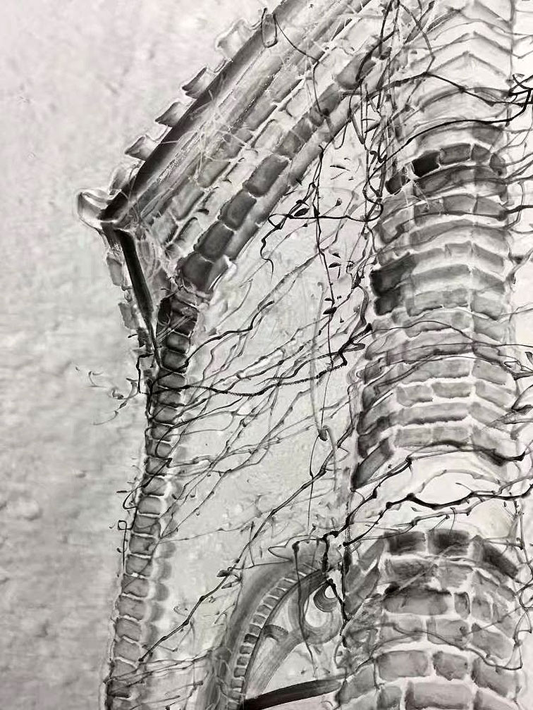 《一窗夢雨》入選第十一届中國藝術節全國優秀美術作品展.尺寸:180x97cm.(西安美術博物館).(局部图)