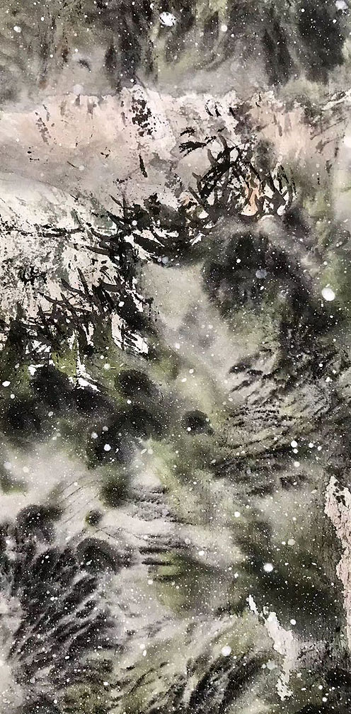 【畫禪精舍山水·筑郊春雪】紙本水墨設色.尺寸:138x68cm(局部图)