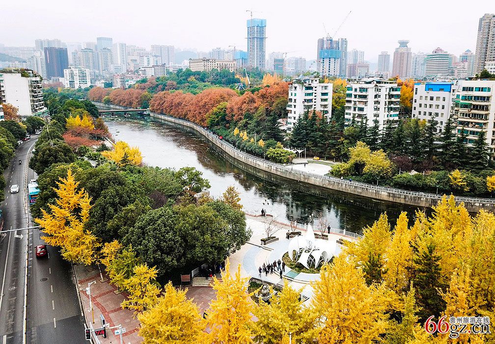 2017年12月3日用无人机俯瞰贵阳山城,街道上的银杏树金色迷人。贵州是一个多彩的山地为主的省份,植物种类繁多,一年四季色彩交替,如同上帝作的自然图画。贵阳这个贵州第一大城市,尽管近年来发展十分迅速,但环境保护和绿化十分给力,在寒冬这样的季节,还能感受到如诗如画的色彩,在一些路段,几种颜色如同调色板,让人差点认为是荒郊野岭,其实这都是市中心。