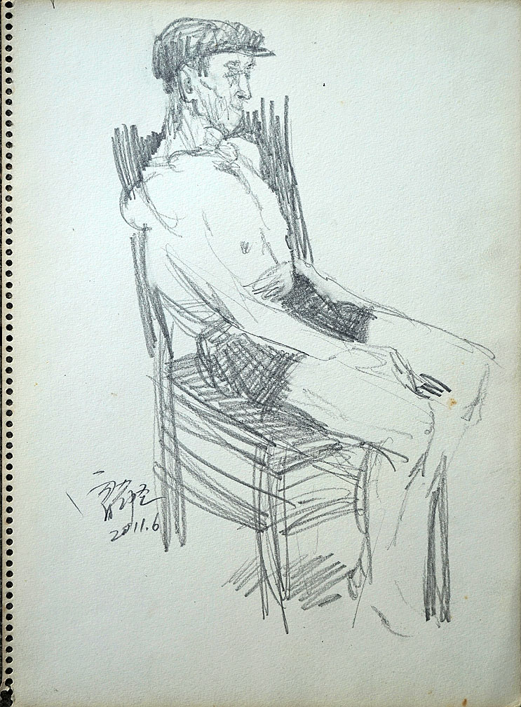 《穿裤衩的老者之二》纸本铅笔 38-cm×26cm 2011