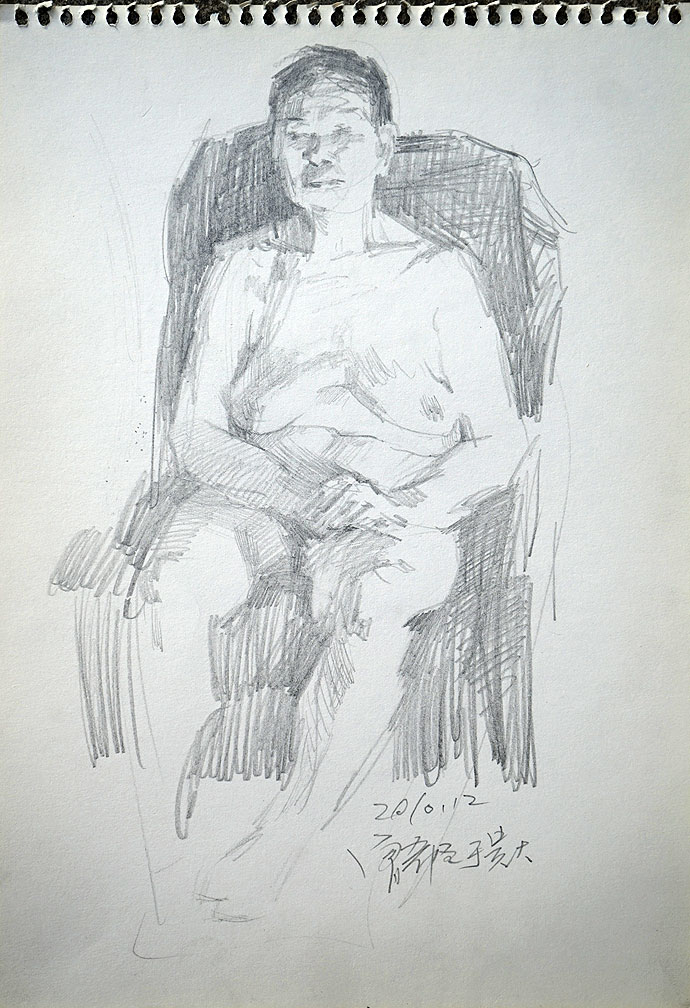 《裸妇正面像》纸本铅笔 38-cm×26cm 2010