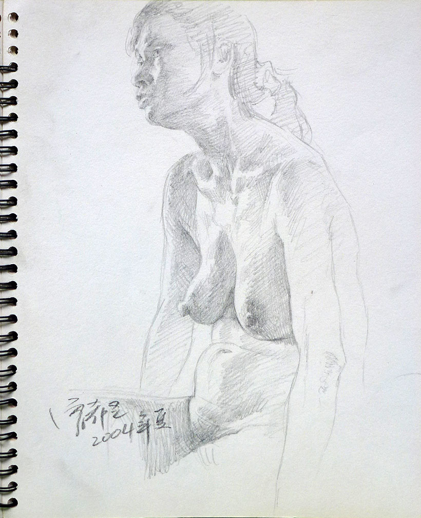 《逆光下的裸妇》纸本铅笔 26-cm×19cm 2004