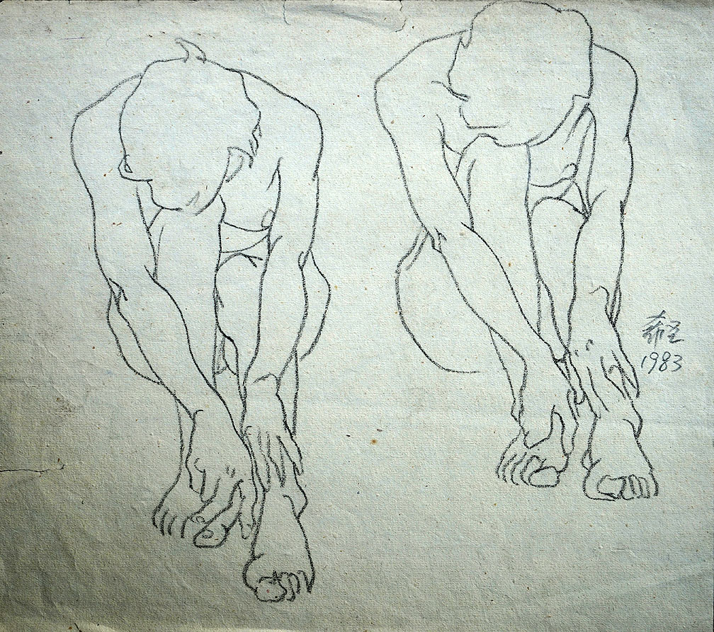 《裸女坐像》纸本铅笔 14.2cm×14cm 1983