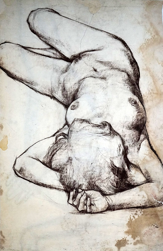 《躺着的裸女》纸本炭精棒 102-cm×66cm 1982