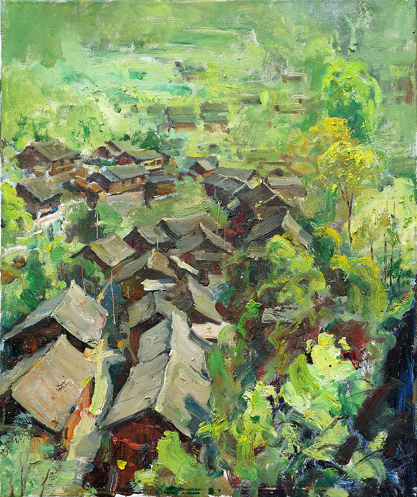 《台江·登鲁寨鸟瞰》布面油画 60cm×50cm 2016