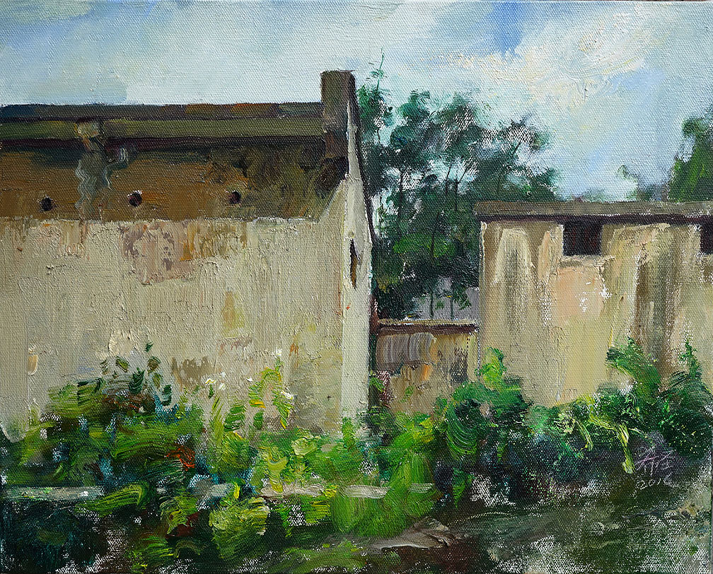 《二轻校·浴室外墙一角》布面油画 40cm×50cm 2016