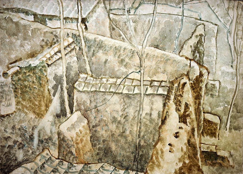 《晋北村落》纸本水彩 39.3-cm×54.7cm 1984