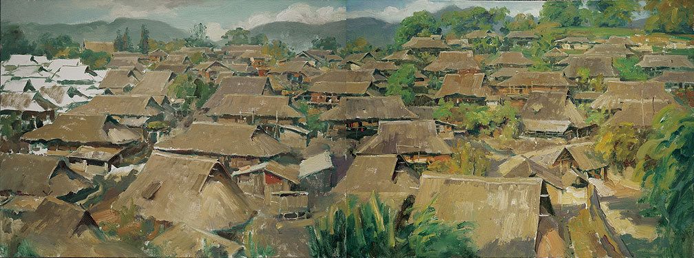 《翁丁·最后的原始部落》布面油画 60cm×160cm 2015