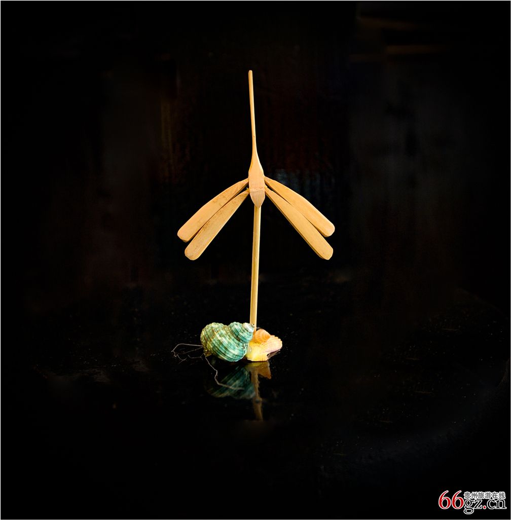 在花溪青岩古镇一个古朴的店铺里,手艺人罗勇专心致志选出几块竹条,削形状,打孔,拼接,粘接,两三个小时后,一个童年记忆里的竹蜻蜓栩栩如生出现在我们面前。罗勇从十岁跟爷爷学木匠,爷爷以前是修木建筑的掌墨师,曾修建过寺庙和木楼等等。罗勇十六岁就近木工厂做小木匠,经过几十年的刻苦练习,他的木工技艺日趋成熟精湛。现在他以寻找记忆里的传统手工玩具为主题,精心制作出许多小木雕和竹雕作品,再现祖辈智慧,传播与感受传统手艺的快乐。