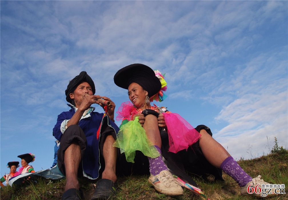 贵阳花溪高坡属于苗岭的一段,苗岭也就是苗族人居住的大山。而高坡的苗族和其他地方的苗族相比,有许多独特的地方。高坡苗族也称红山苗和背牌苗。服饰特征以背牌为主要标志,加上色彩鲜艳的头饰和服装,显得富丽、高贵而庄重。每逢隆重的节日活动“四月八”和“斗牛节”,盛装的红山苗成为高坡宽阔草原上的一道鲜艳夺目的风景。