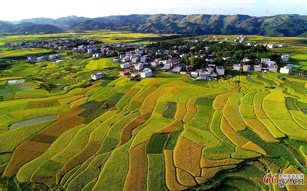 高坡苗族乡位于贵阳市东南端,距贵阳市51公里,地处花溪与龙里、惠水三县(区)交界处,总面积120平方公里,辖19个行政村,121个村民组,87个自然寨,全乡平均海拔1500米,境内最高处皇帝坡海拔1712.1米。高坡苗族乡,居住有汉、苗、布依等民族,自然风光优美,有峡谷、石林、草场、多级瀑布、天然大盆景、万亩田园等景观。此组图为秋季披上金甲的高坡梯田。