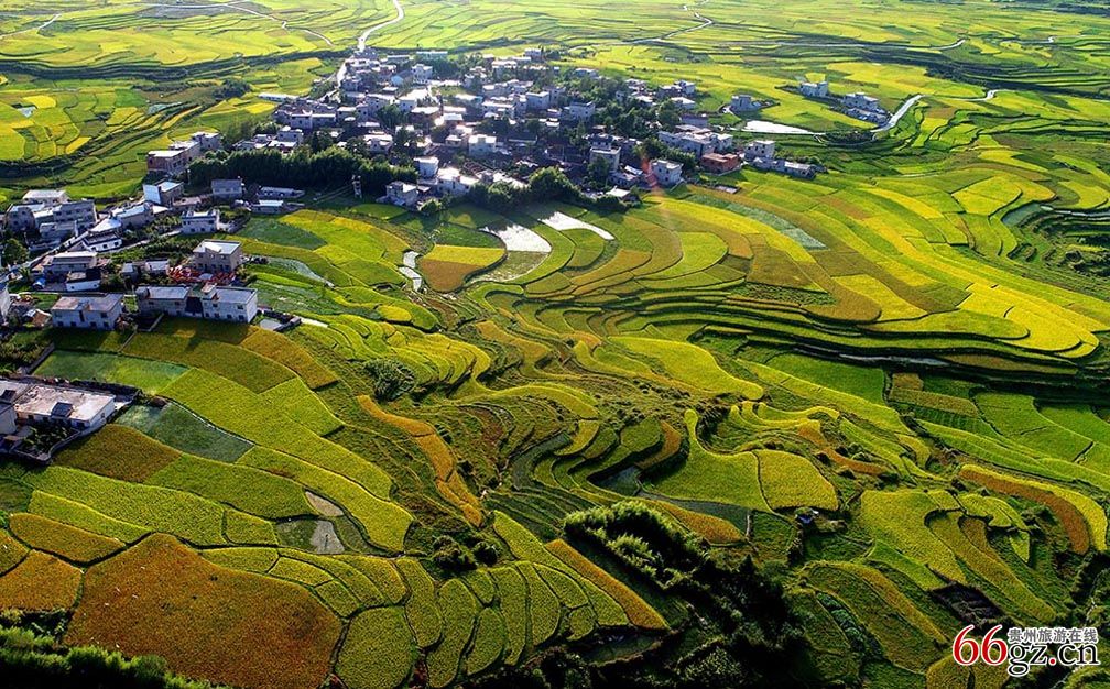 高坡苗族乡位于贵阳市东南端,距贵阳市51公里,地处花溪与龙里、惠水三县(区)交界处,总面积120平方公里,辖19个行政村,121个村民组,87个自然寨,全乡平均海拔1500米,境内最高处皇帝坡海拔1712.1米。高坡苗族乡,居住有汉、苗、布依等民族,自然风光优美,有峡谷、石林、草场、多级瀑布、天然大盆景、万亩田园等景观。此组图为秋季披上金甲的高坡梯田。