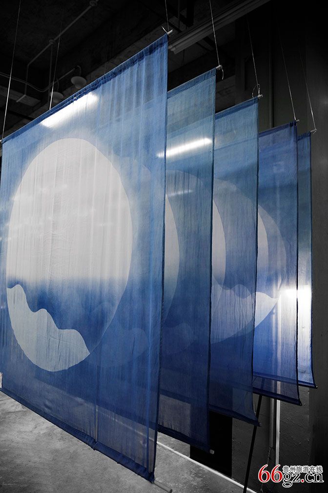简介:作品以苗族传统蜡染技艺手工染制,植物蓝染在桑蚕丝的轻盈面料中深浅有序,诗情画意。跌宕起伏的山峦,与一成不变的明月。动与静的之间,变与不变之间,藏着道法自然的规律。