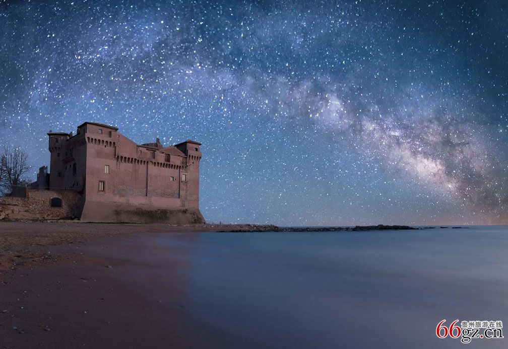 当我选择圣塞韦拉作为下一个拍摄地时,我曾看到过一张海上强风暴冲击城堡的图片,遗 憾的是,我在意大利短暂停留的期间,那一年大都好天气,海面平静,我等待了一个新月 之夜,为了让这里在浩瀚星空下永垂不朽,我想象着,多少日月见证了这城堡和这片从青 铜时期以来便伫立在这里的土地。