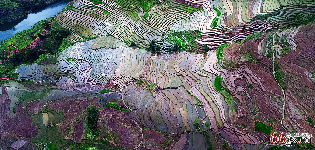 贵州省盘县新民镇旅游资源丰富,特别是打克、乍勒、旧屯三村的梯田连成一片,跌宕起伏,宏伟壮观,形成一幅独特的万亩梯田风光,吸引着不少外来游客和摄影爱好者。