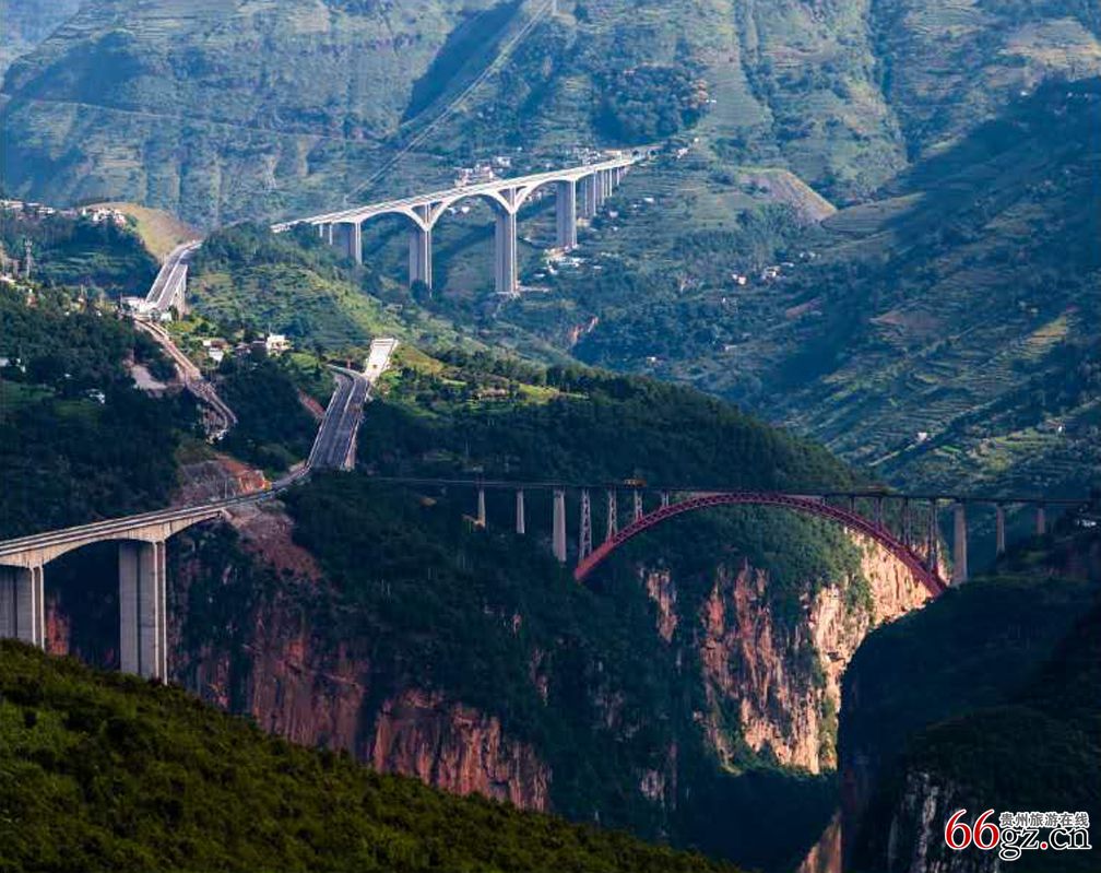 “中国凉都”贵州六盘水的“桥”有滚滚北盘江上的世界最高桥、清澈小溪、古朴清雅小桥、古驿道上普济桥,毛虫河上竹竿桥,世界公路的天生桥、明湖湿地彩虹桥等等。