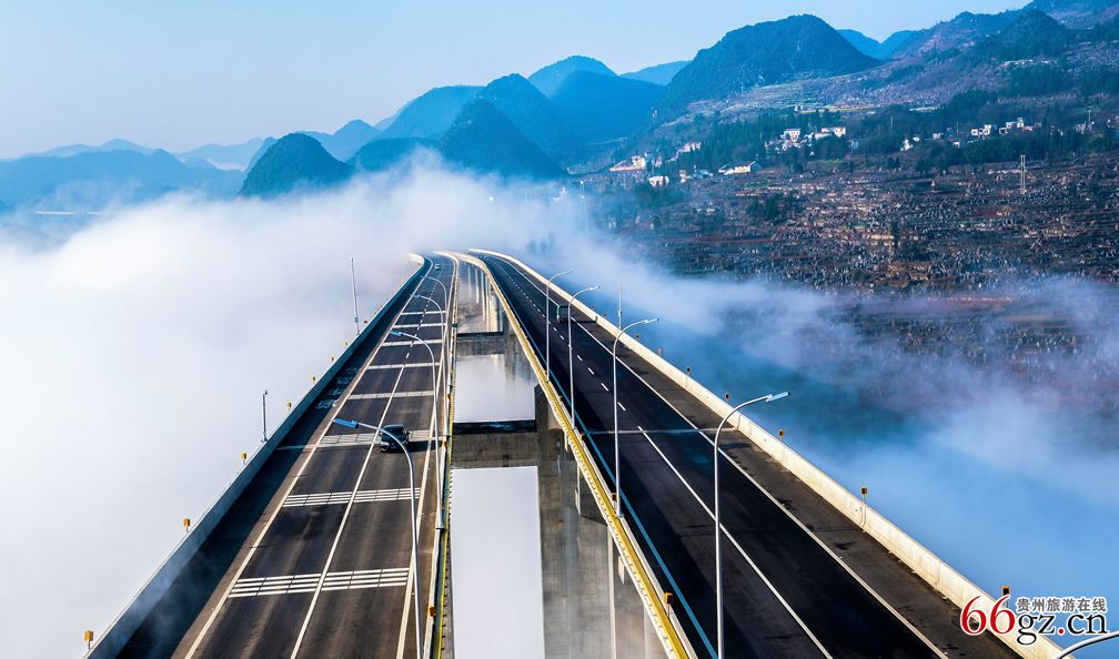 “中国凉都”贵州六盘水的“桥”有滚滚北盘江上的世界最高桥、清澈小溪、古朴清雅小桥、古驿道上普济桥,毛虫河上竹竿桥,世界公路的天生桥、明湖湿地彩虹桥等等。
