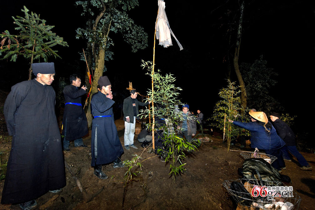 三等奖 招龙节(组图)--鬼师抛撒着招龙米,在山头还插上一个招龙的白纸钱。