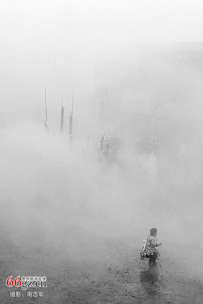 贵州省从江县民族文化底蕴深厚,这里的苗侗族群众一生酷爱芦笙,凡逢年过节或重大喜庆活动都会吹奏芦笙以示庆贺,场面壮观、热闹非凡。但倘若遇上烟波渺渺的雨雾天气,芦笙吹奏场景更有一番韵味,犹如一幅幅诗情画意的水墨画卷。图为从江县雍里乡乌扭村苗族同胞在芦笙节上吹奏芦笙的场景。